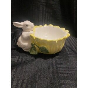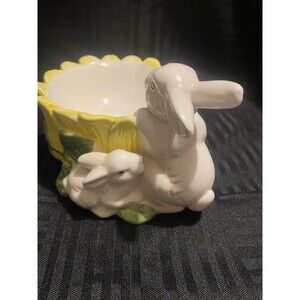 Vintage international bazaar bunny rabbit sunflower candy dish easter decor