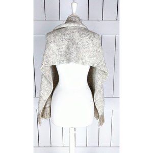 Vintage ivory chunky crochet knit fringe pocket shawl scarf/knit fringe tassel winter scarf