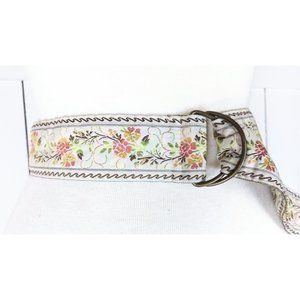 Vintage ivory floral jacquard tapestry ribbon chord belt