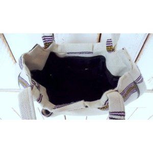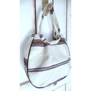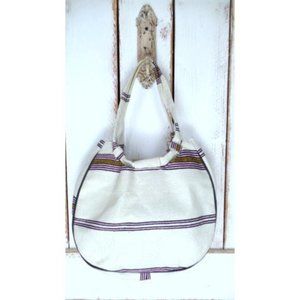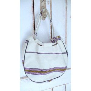 Vintage ivory striped cotton boho/hippie shoulder bag/striped cloth handbag