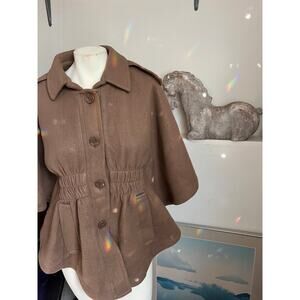 Step out in style with this vintage brown fleece poncho cape jacket! This unique batwing design offers a cozy and fashionable look. Perfect for layering on chilly days or adding a retro touch to your outfit. Grab this one-of-a-kind piece and elevate your wardrobe today! Don't miss out – add this vintage gem to your collection now!