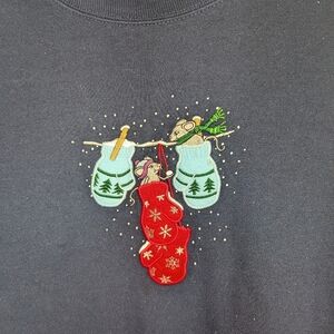 Vintage jerzees active wear Christmas sweater mice and stockings funny size woman's Large