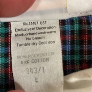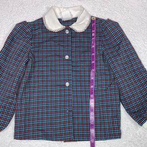 Vguc pfsf pretty plaid button down blouse with puffy sleeves and Peter Pan collar, wool blend strap skirt jumper navy blue with button straps elastic waist no stains, tears, holes, fade or wash wear size 4