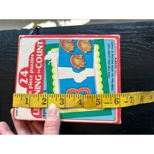 All pieces are included. Some of the pieces are a bit bitter warped, but they’re still intact. The cards all feature numbers with different photos of different animals and other objects.