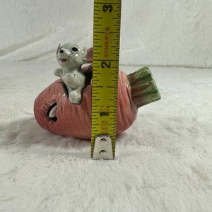 Vintage kitschy ceramic Mouse in Carrot Toothpick Holder Hand Painted 1950’s