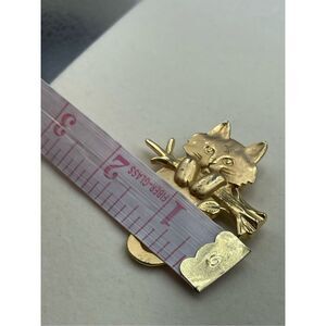 Vintage kitty Hanging from Branch brooch. The finish is of a frosted gold and smooth gold colored metal. No hallmark.