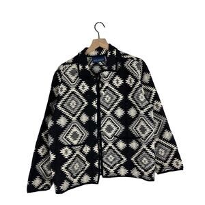 Vintage lagenlook festival southwestern woven button front carpet jacket medium detailed buttons