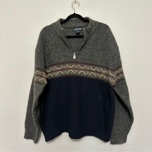 Vintage lands end men’s Nordic 1/2 zip collared pullover sweater wool blend XL