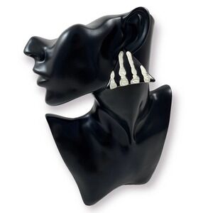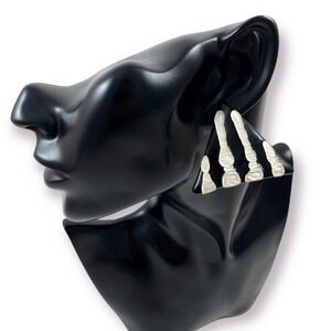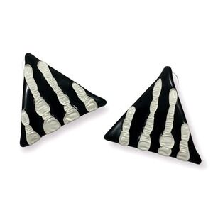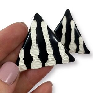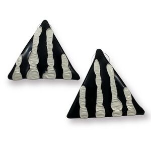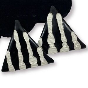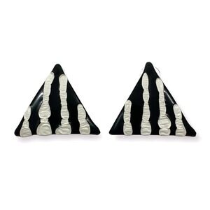 Vintage large triangular black and white enamel earrings. Excellent vintage condition. Screw backs for pierced ears. Large black enamel with unique white enamel painted lines. Measures 1 5/8" long and 1.75" wide.