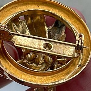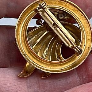 Vintage layered rhinestone brooch. Circle brooch with a flower type design on top and rhinestones in center.