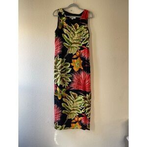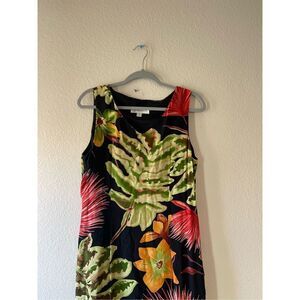 No flaws. Has the side slit. Tropical leaf floral print. V neck style. Would be so cute for the summer or vacation