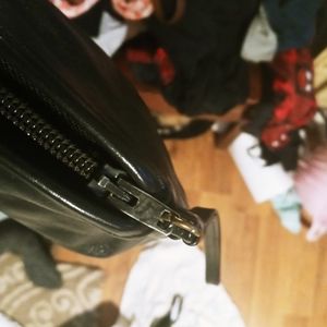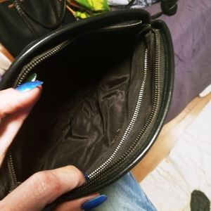 Perfect condition leather zipper bag.can be used for makeup or just going out.very pretty in person. Zipper works great.
