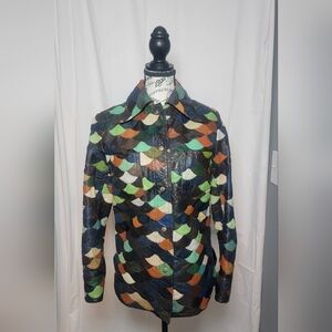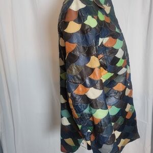 Vintage leather fish scale patchwork 1970s jacket
