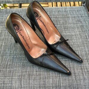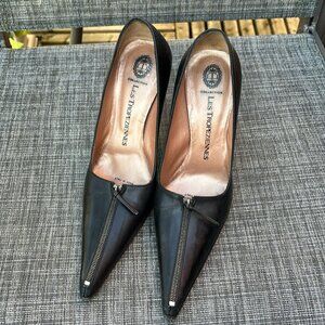 Insane pointed toe stiletto with a curved heel. Zipper detail and genuine leather. These are so unique and feel so high quality.
