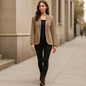 Style notes: A 90s/Y2K minimalist suede blazer that layers perfectly over tees, slip dresses, or a turtleneck and boots.