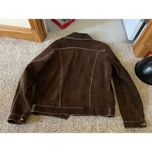 Howdy partner! This vintage leather western jacket is the perfect addition to any wardrobe. It is sure to turn heads and make you feel like a true cowboy (or cowgirl!). The jacket is made of high-quality leather and is in excellent condition. It features a classic western design with fringe, yoke, and decorative stitching. The jacket is fully lined and has two front pockets. Don't miss out on this unique piece of history! Yeehaw!