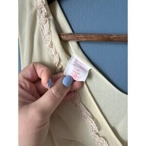 Vintage lemon chiffon colored long slip night with delicate lace and bow trim. Excellent vintage condition, no noted flaws but typical light signs of wear and age