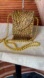Vintage leopard calf fur and leather crossbody bag, beaded gold chain, excellent