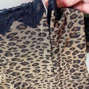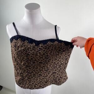 Vintage Venezia jeans clothing co leopard print cami top with lace trim and corset hooks. Stretchy material and adjustable straps. Pinned on model for photos so please read measurements for accurate sizing