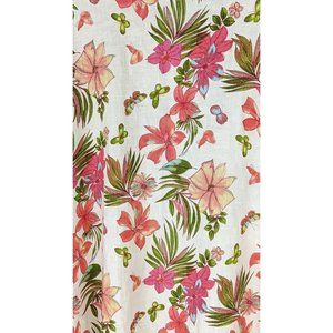 Vintage linen blend ivory pink tropical floral boxy cardigan kimono blazer