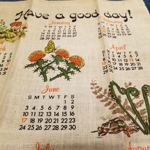 Vintage linen tea towel calendar birds bugs bunny & flowers 1979 nos
