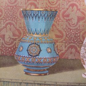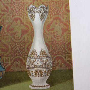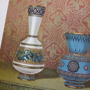 Vintage lithograph Print Enameled Glass Vases. Russia