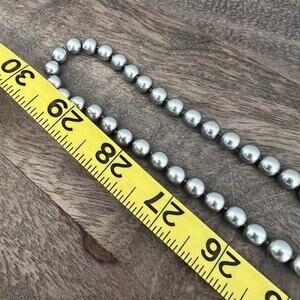 Vintage long silver pearl necklace with fish hook clasp