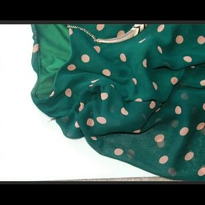 Vintage, "Mad Men," looking blouse. Green with tan polka dots. I got this top at a vintage store two years ago. PERFECT for the vintage look.