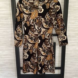 Vintage looking brown 70s 80s style dress three-quarter sleeve size S