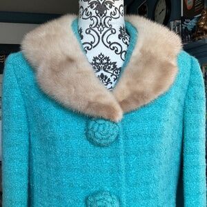 Vintage loomed lambswool suit jacket with mink collar in turquoise