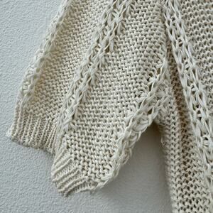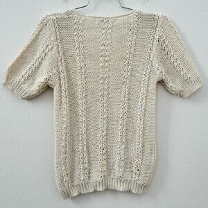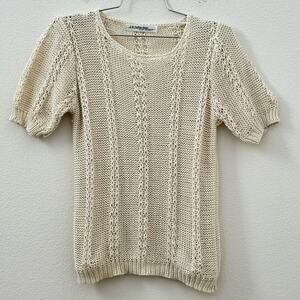 Vintage loose-knit short sleeved sweater. By J.S. collection / sexy beauty— what an incredible vintage tag. No size tag. I’d call it a modern medium. Approximately 21” pit to pit and 20” in length.