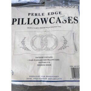 Here for your consideration is a lot of three Jack Dempsey stamped for embroidery Wedding Ring Pillow Cases. They are all the exact same [pattern and company but they must have been purchased in different years. Each package contains 1 pair of standard size pillow cases that are poly/cotton broadloth. All three are new never used.