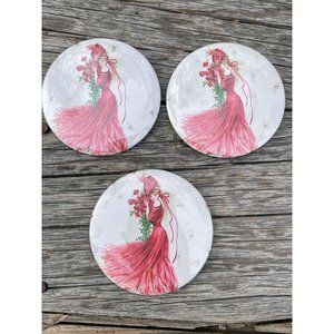 Vintage lot 3 Pocket Mirrors Victorian Lady Big Hat Red Dress
