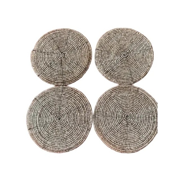 Vintage lot of 4 coasters beaded sliver round Tabletop Décor 4" with Bag