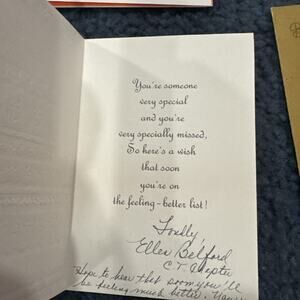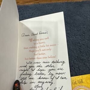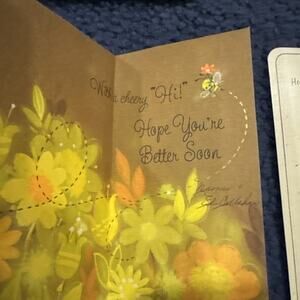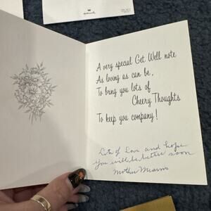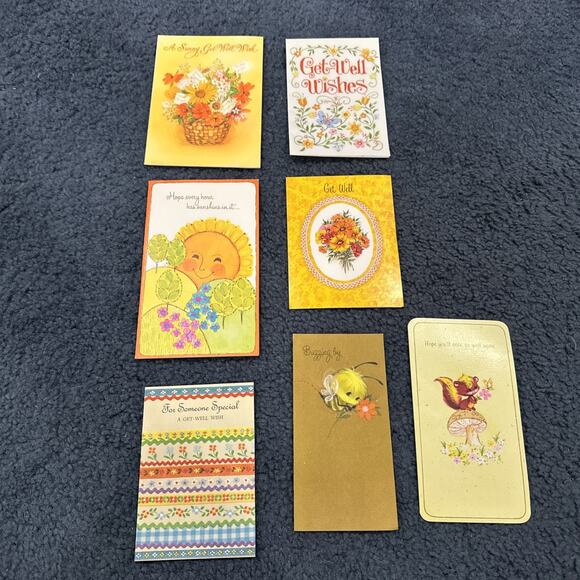 The product is a lot of 7 vintage used get well cards. These collectible paper cards are perfect for those looking to add a unique and nostalgic touch to their greeting card collection. Each card likely carries a charming and classic design, making them a special addition for any vintage card enthusiast.