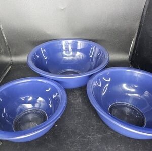 Vintage lot of three cobalt blue Pyrex bowls