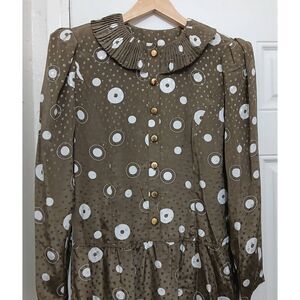 Vintage louis feraud womens Size 8 dress fuff shoulder midi green Victorian