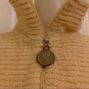 Half zipper with 2 nice deep side pockets, also chenille.