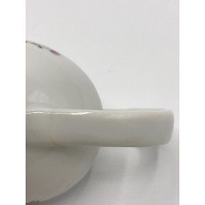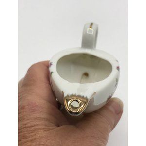 Vintage Japan small porcelain gravy/sauce boat. This charming piece has lovely pink roses with green foliage and has gold trim that is still in great condition. Please view pictures closely as they are part of the description. The handle has stain line at bottom but does not appear to be cracked. Thanks yst13