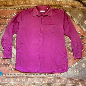 Vintage magenta Christian Dior button-down shirt. Very soft cotton/silk blend. Signs of wear like minor discoloring in the armpits, otherwise in good condition. CD embroidered on the cuff. Size is 17 neck, 43 length, 5 wrist (EU sizes). Made in France.