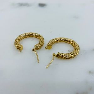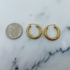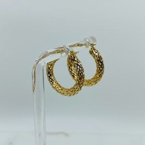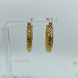 Vintage marked 14 kt gold open work mesh hoop earrings. Good condition. Wt; 2.1 grams.
