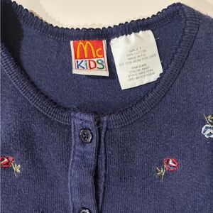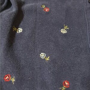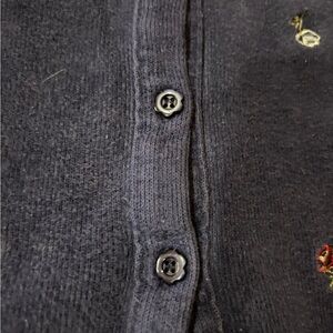 Charming blue cardigan with floral embroidery. Perfect for layering.