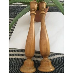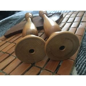 Vintage mcm candlesticks turned wood scroll 11" tapered candle holders