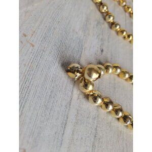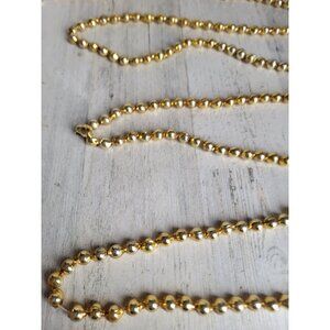 Product has multiple broken bead pieces on Garland, paint chipping and scratches, loose on string with a few gaps, Garland is loose, sold as is, but otherwise in good condition