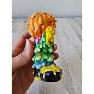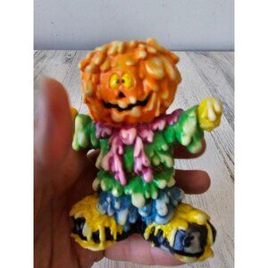 Vintage melted pumpkin scarecrow candle holder stick Halloween decor unique