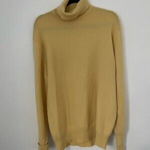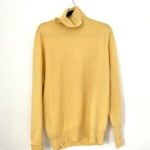 Vintage mens 100% cashmere turtleneck yellow sweater made in Scotland john laing