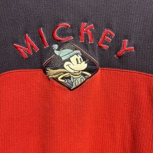 Vintage men’s Mickey Mouse Ski Lodge Red and Blue Sweater size medium