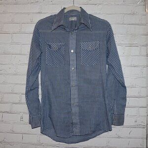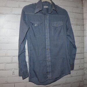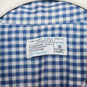 Vintage men's Plaid Button-down collared shirt Size JcPenny White and Blue Small