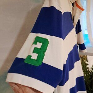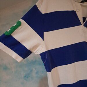 Ralph Lauren Polo men's size large vintage shirt, excellent condition. It has dark blue strips on whie with a green embroidered polo player on the chest. I will ship it the same or next business day.