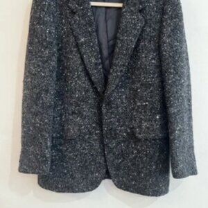 Elevate your style with this elegant black tweed jacket. Perfect for any occasion, this jacket offers a sophisticated look with its classic design.